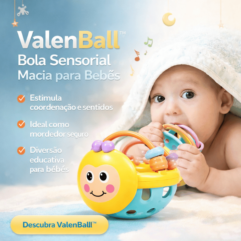 A ValenBall™ é mais do que um brinquedo: é um convite para o bebê explorar o mundo com segurança, conforto e alegria 💛