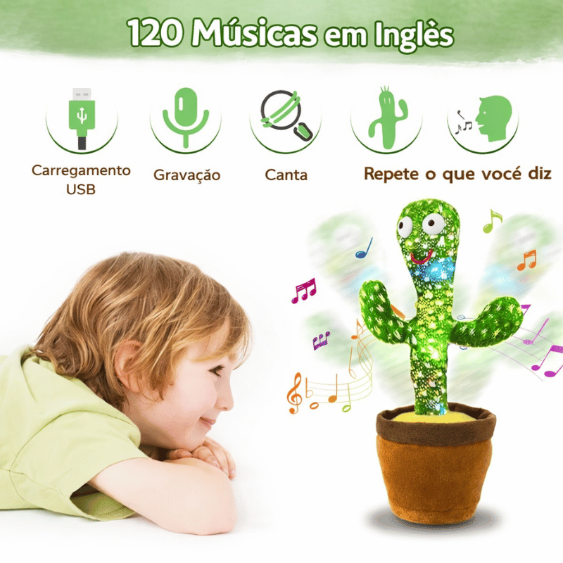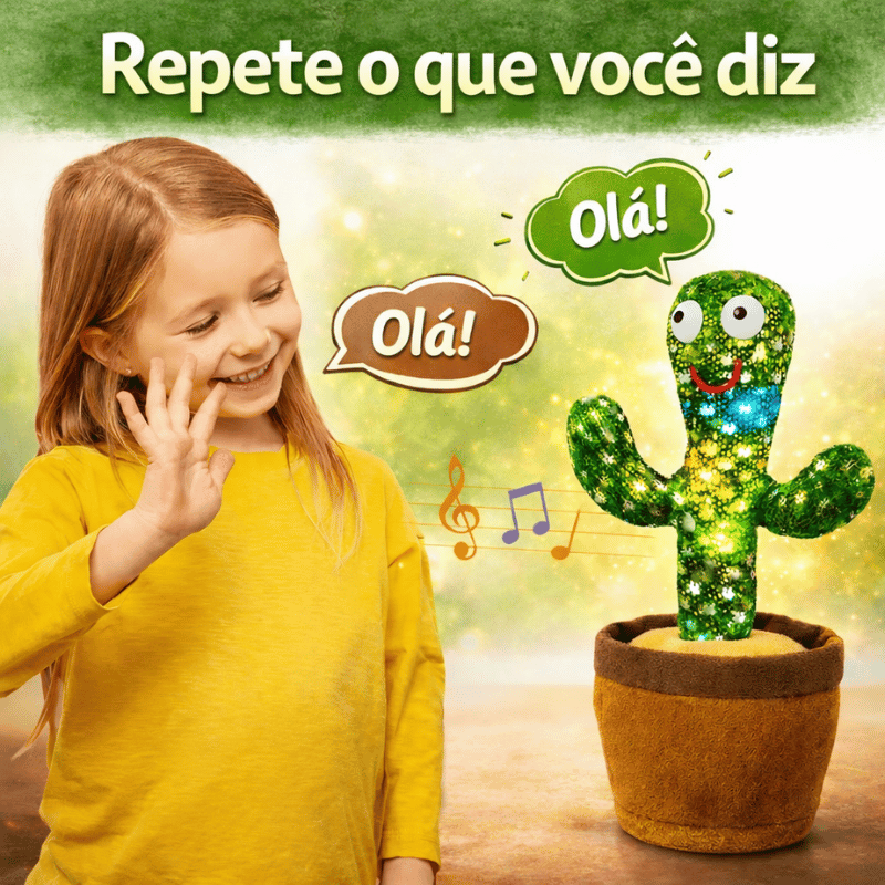O Valen Cactoo™ 🕺🌟 é um cacto super animado que dança, brilha e repete tudo que você fala com uma voz divertida que arranca sorrisos até dos adultos! Ideal para estimular a fala, audição, coordenação motora e o vínculo afetivo com o seu pequeno! 👶🎶