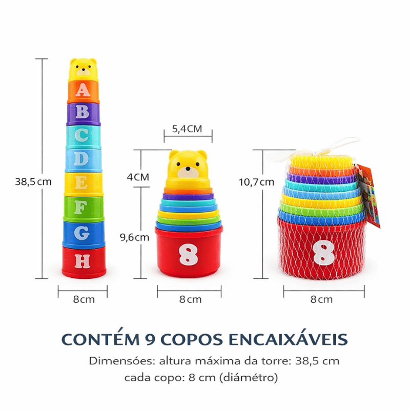 O Conjunto de Copos Valen Cups™ é mais do que um brinquedo, é uma ferramenta de aprendizado divertida e envolvente! Ideal para bebês e crianças pequenas, ele estimula: