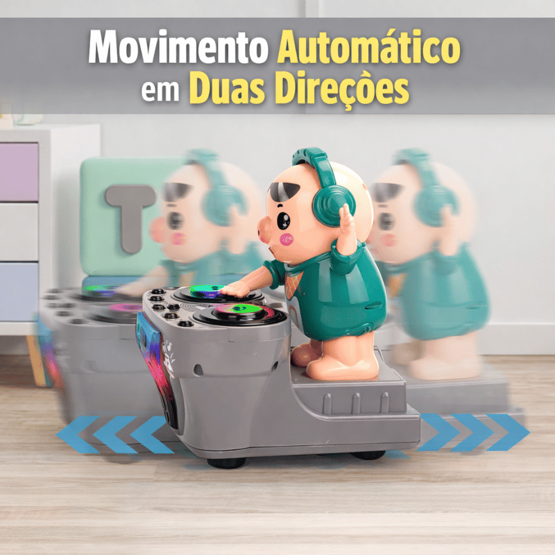 Enquanto toca músicas animadas, o porquinho DJ movimenta o corpo e “toca” sua mesa de DJ com as mãos, criando uma verdadeira apresentação musical que prende a atenção dos pequenos.
